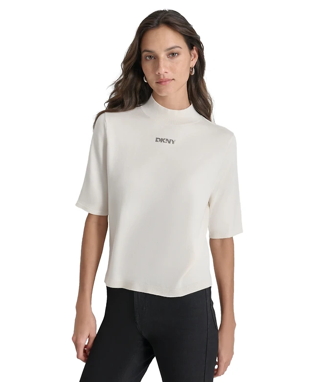 Dkny Jeans Petite Mock-Neck Embellished-Logo Sweater