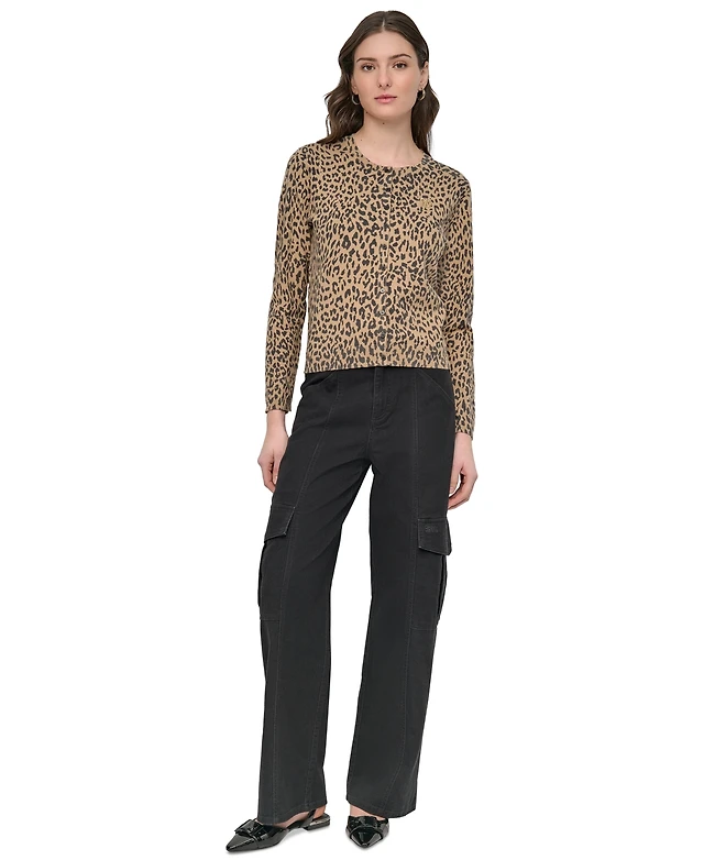 Dkny Jeans Women's Cheetah-Print Cardigan Sweater