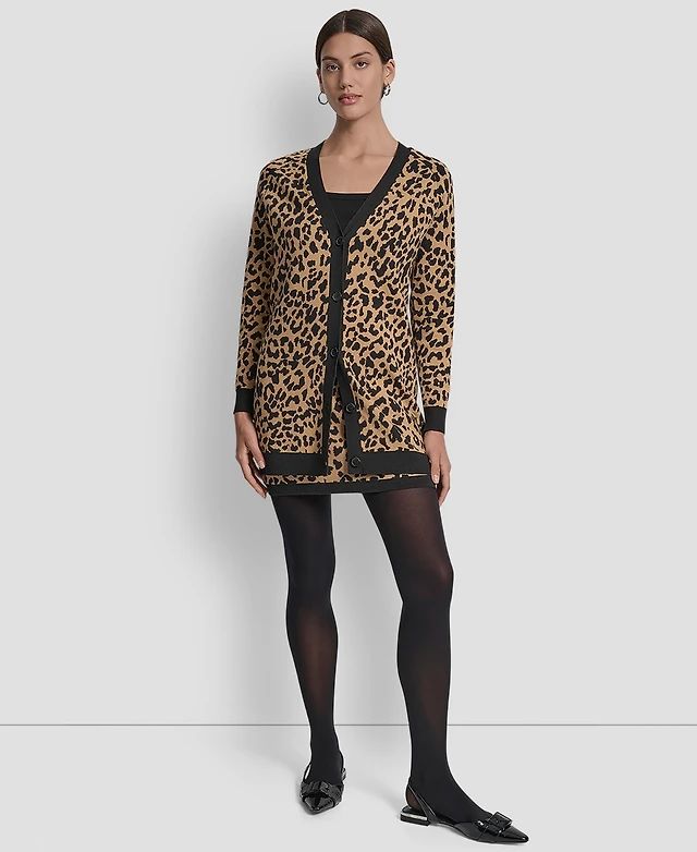 Dkny Jeans Women's Cheetah Print Long Sleeve Cardigan Sweater
