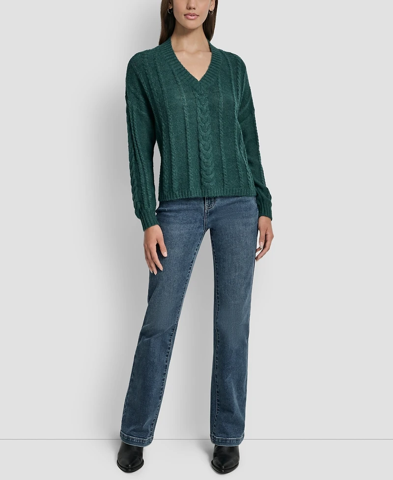 Dkny Jeans Women's V-Neck Cable-Knit Sweater