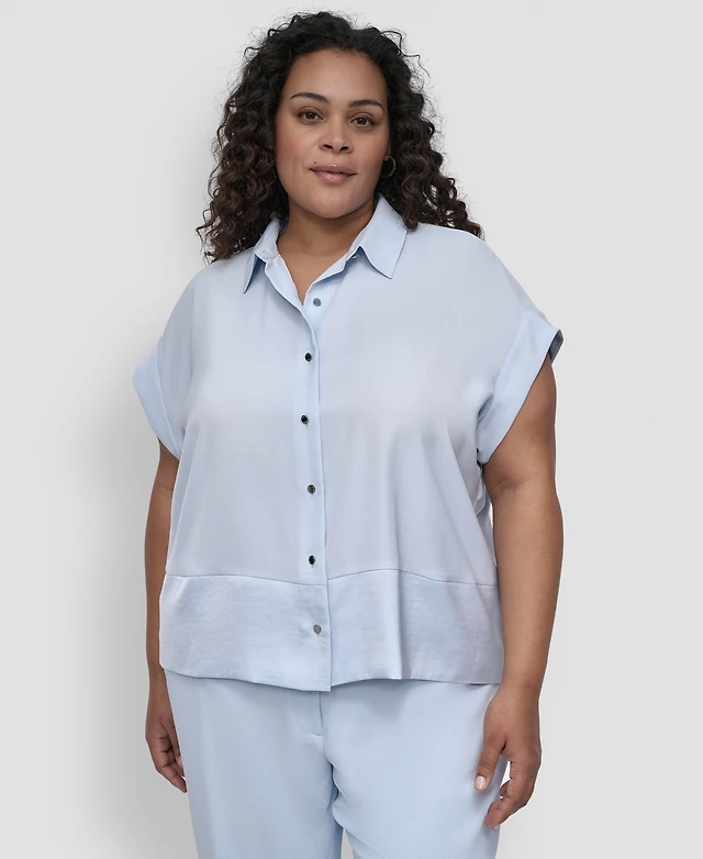Dkny Plus Size Reverse Satin Button-Front Shirt
