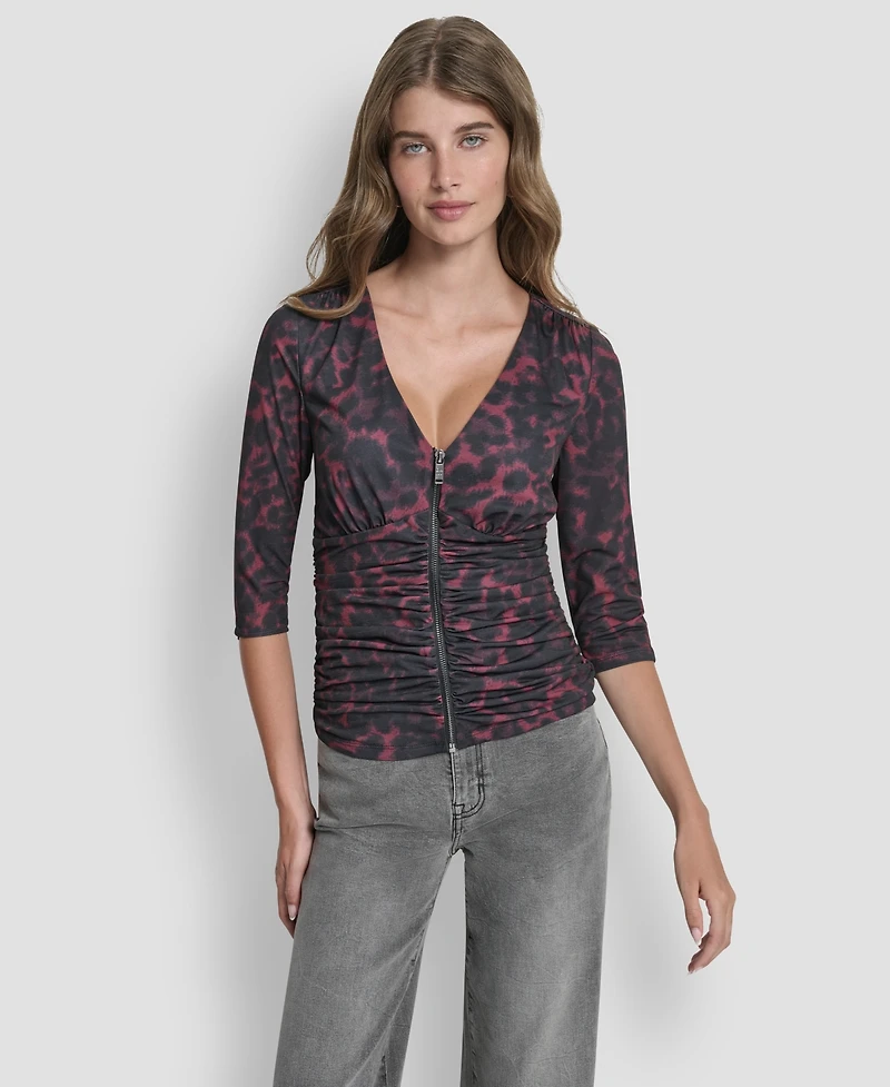 Dkny Women's 3/4-Sleeve Zip Front Top