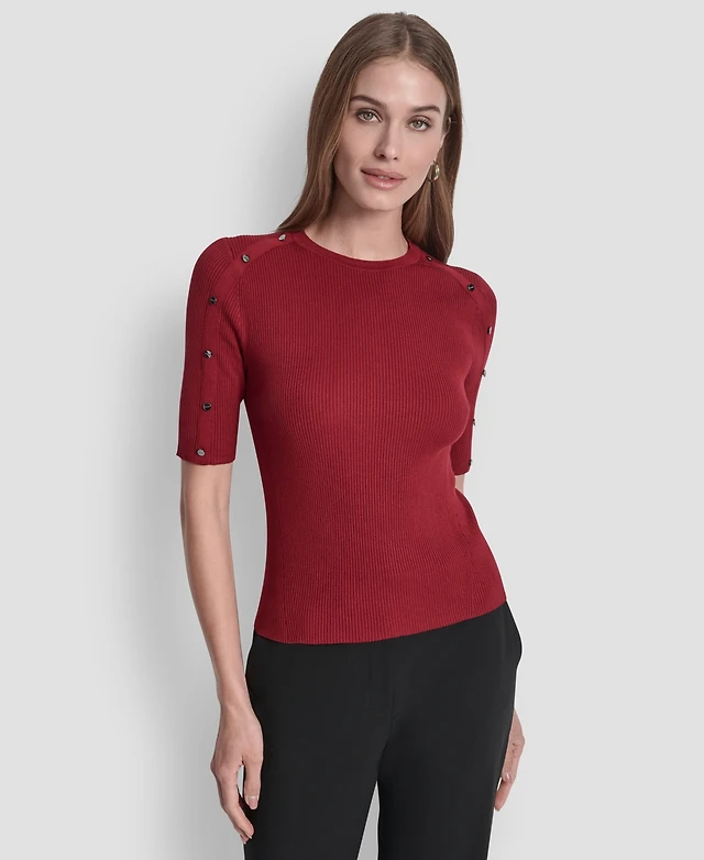 Dkny Women's Ribbed Short-Sleeve Sweater