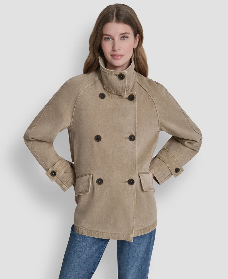 Dkny Women's Denim Double Breasted A-Line Coat