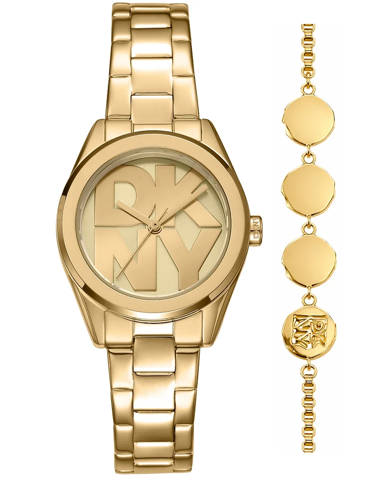 Dkny Women's Logo Quartz Gold-Tone Stainless Steel Bracelet Watch 28mm Gift Set in Bloomington, MN