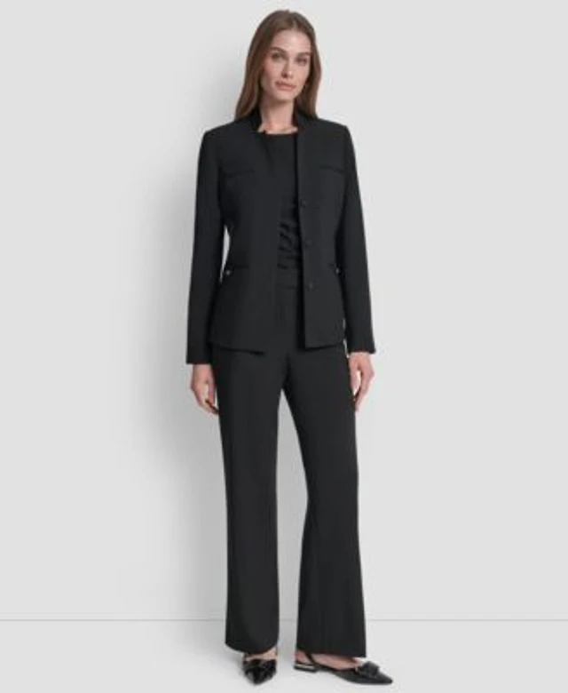 Dkny Womens Mandarin Collar Open Front Blazer High Waist Wide Leg Trousers