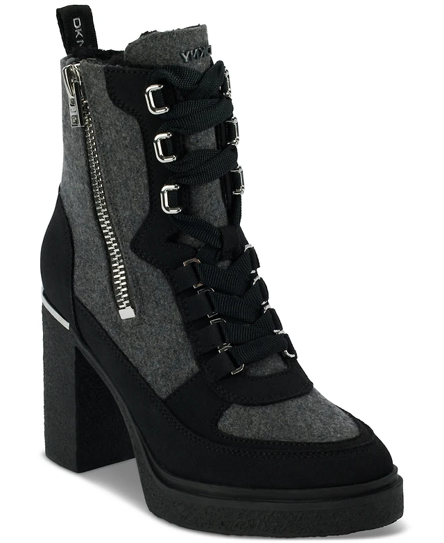 Dkny Women's Toia Lace-Up Zip Block Heel Booties