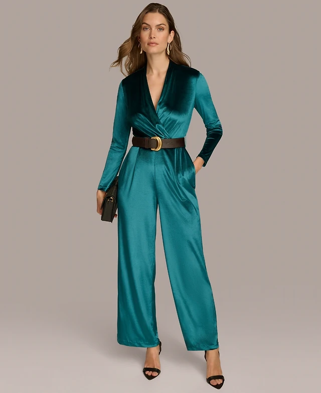 Donna Karan New York Women's Belted Velvet Jumpsuit