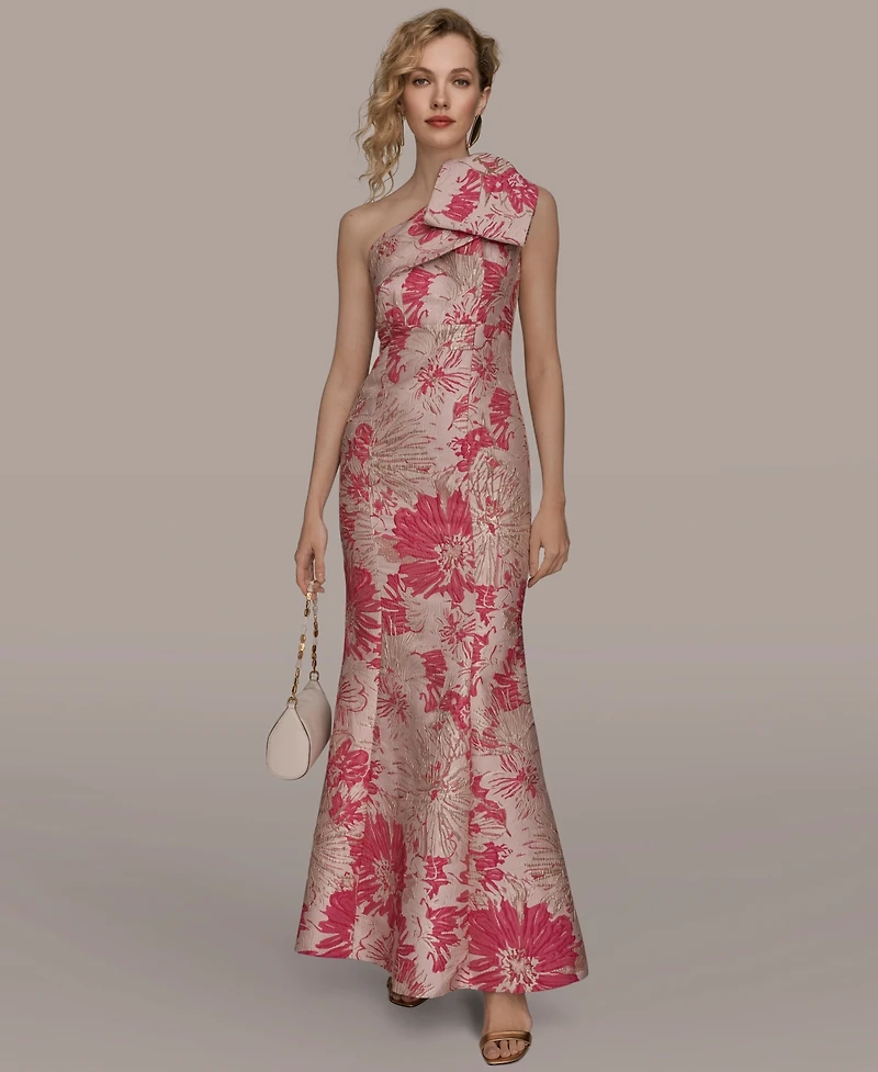 Donna Karan New York Women's Jacquard Bow-Trim One-Shoulder Gown