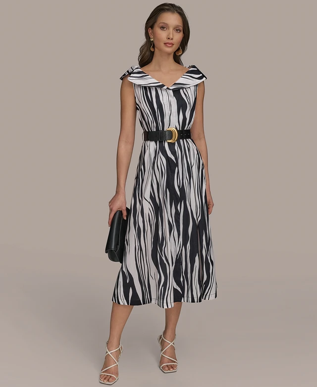 Donna Karan New York Women's Printed Belted A-Line Dress