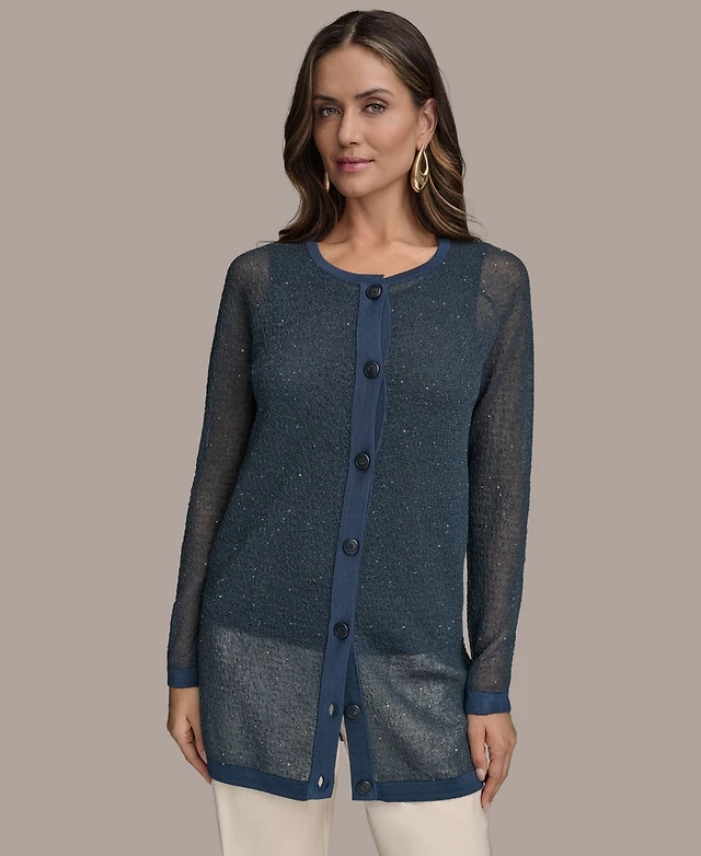 Donna Karan New York Women's Sequin Embellished Long Cardigan
