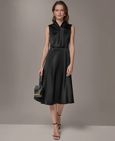 Donna Karan New York Women's Cowl Neck A-Line Midi Dress