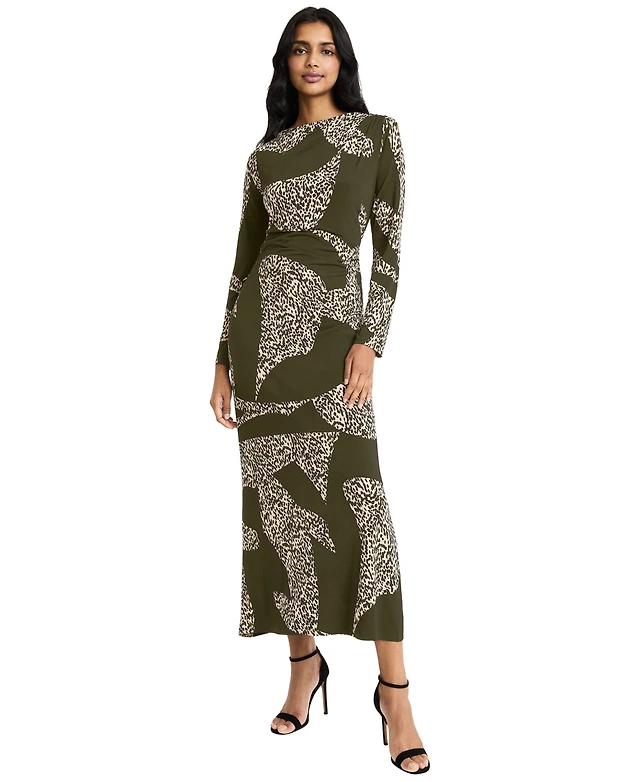 Donna Morgan Women's Printed Long-Sleeve Midi Dress