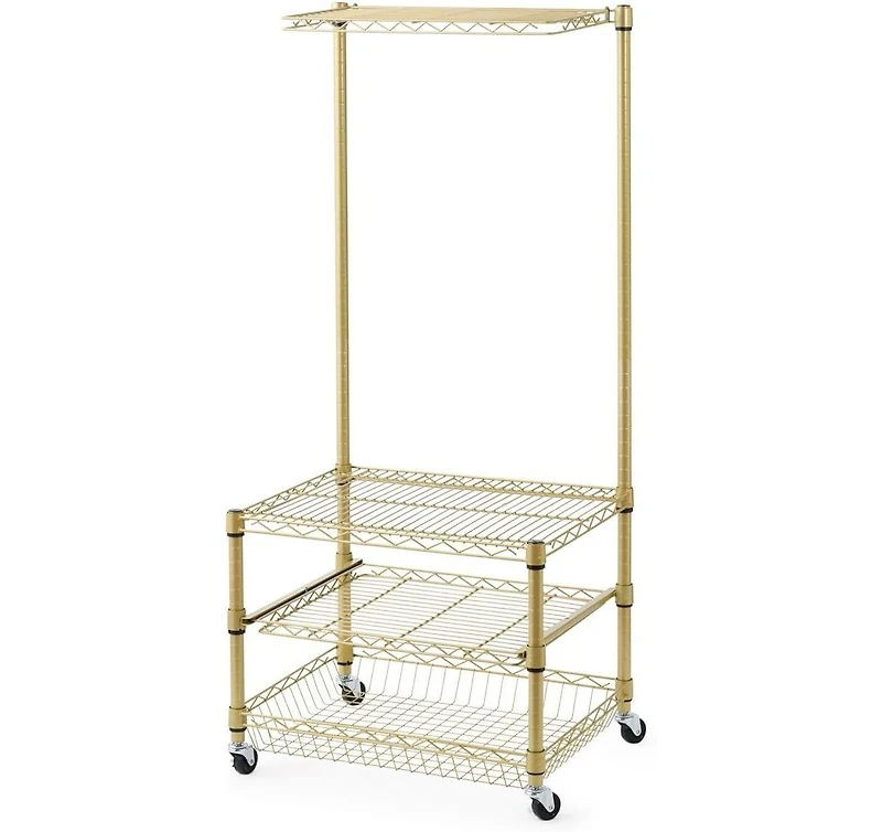 Having a mini-fridge in a dorm room, office, or kitchen gives you extra room for snacks and drinks. And if you don't want to lose useful space to a mini fridge, we have the perfect shelving solution! The Suprima Portable Mini Fridge Organizer in Gold not only moves your mini fridge off the floor, but it also gives you extra shelving space. With three other levels in addition to a shelf for your mini fridge, you'll have plenty of space to store food, drinks, small appliances, and a variety of other essentials.