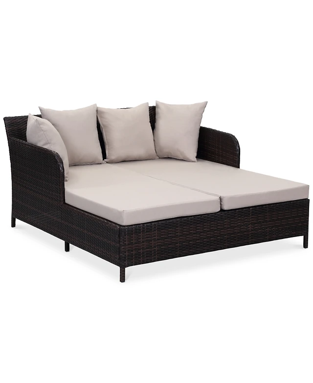 Skonyon Spacious Outdoor Rattan Daybed with Upholstered Cushions and Pillows