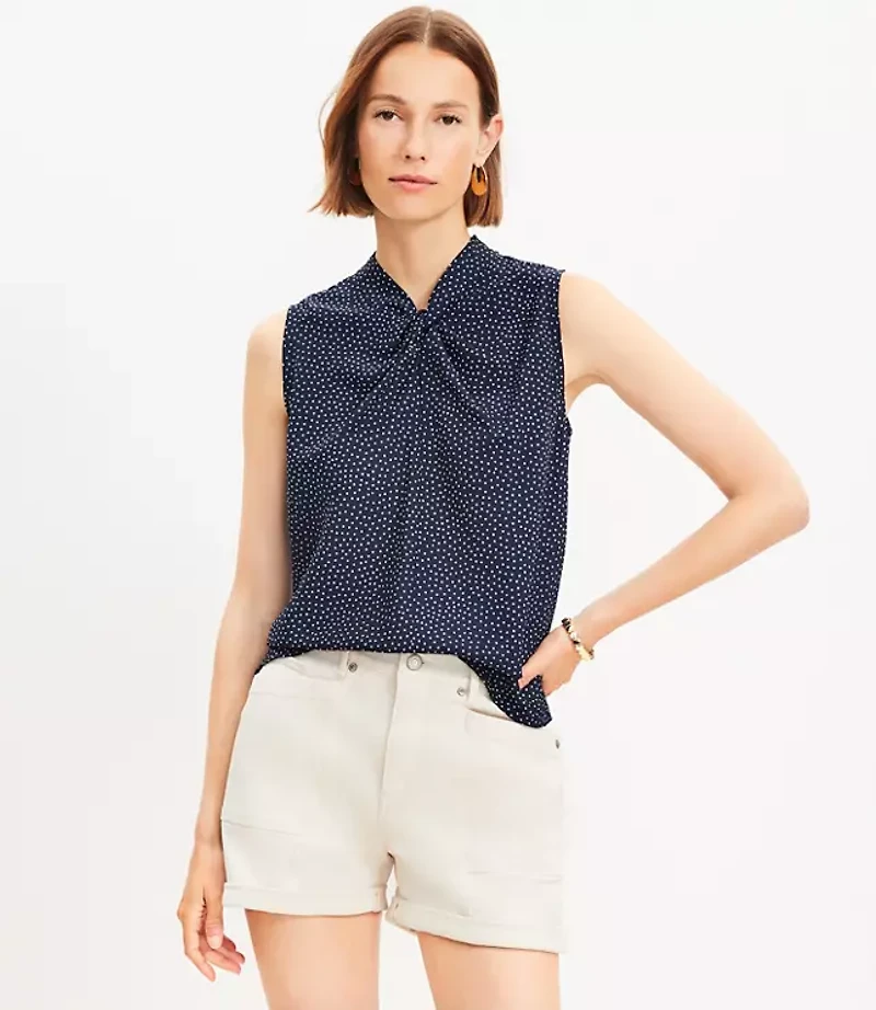 This fluid woven shell is an understated necessity with an artful twist at its neckline. High V - neck with keyhole. Sleeveless Back button keyhole., Hit: Hits at hip, Imported:, Fit: Relaxed an easy shape that's just shy of loose, Length: 22 1/2"long, Fabrication: 100% Polyester, Garment Care: Machine Washable Loft Dotted Twist Shell Top Size XL Deep Space Navy Women's by Loft Size Regular - XL Deep Space Navy Women's Crew, Neck Sleeveless Tanks & Shells Tops Work 100% Polyester Machine Washable