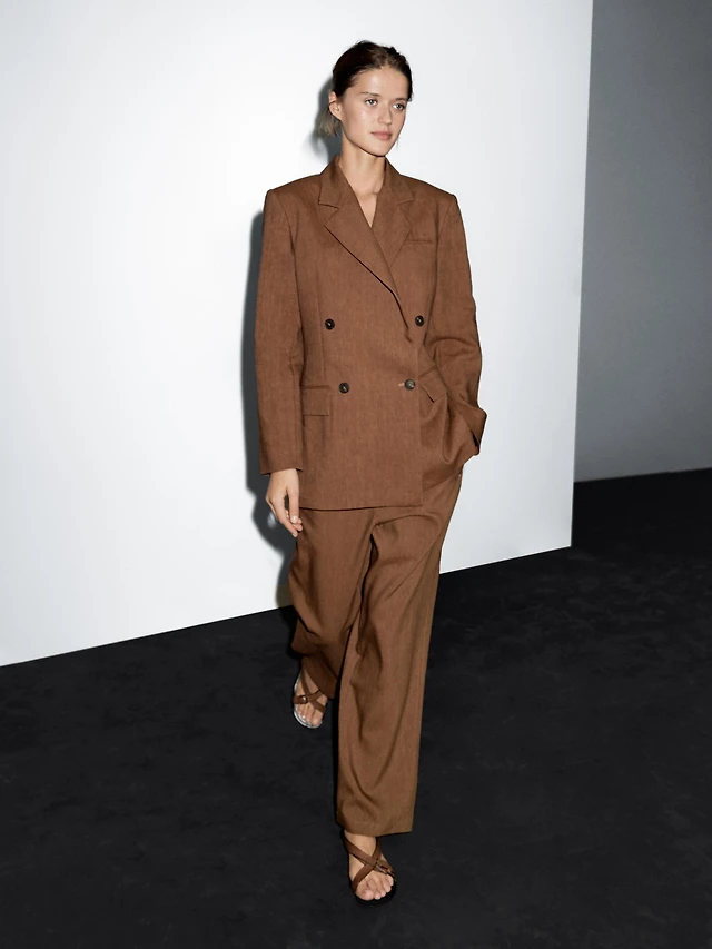 Double-breasted linen blend blazer