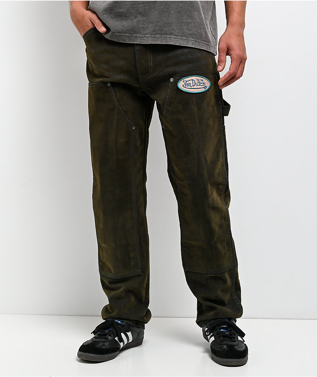 Von Dutch Double Knee Olive Flocked Denim Pants