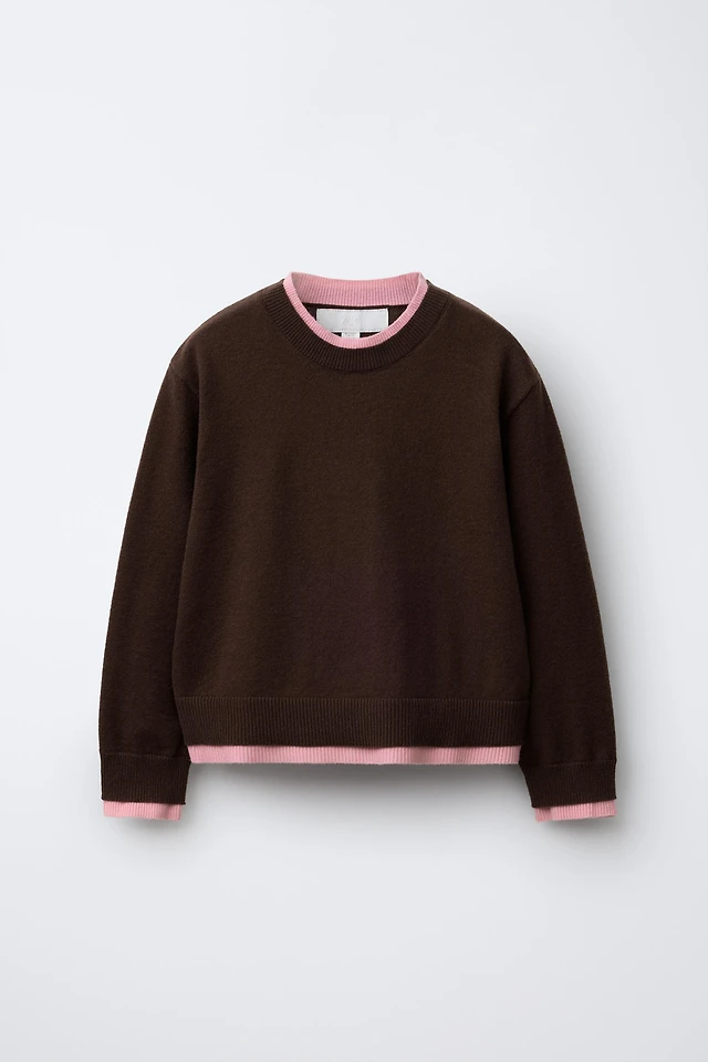 TEXTURED KNIT SWEATER WITH ROLLED TRIM