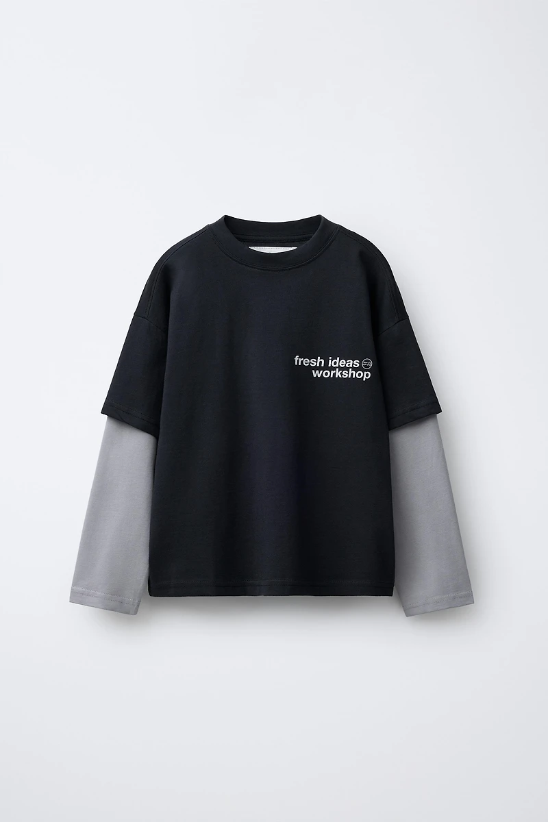 DOUBLE SLEEVE TEXT T-SHIRTDOUBLE SLEEVE TEXT T-SHIRTDOUBLE SLEEVE TEXT T-SHIRTDOUBLE SLEEVE TEXT T-SHIRT