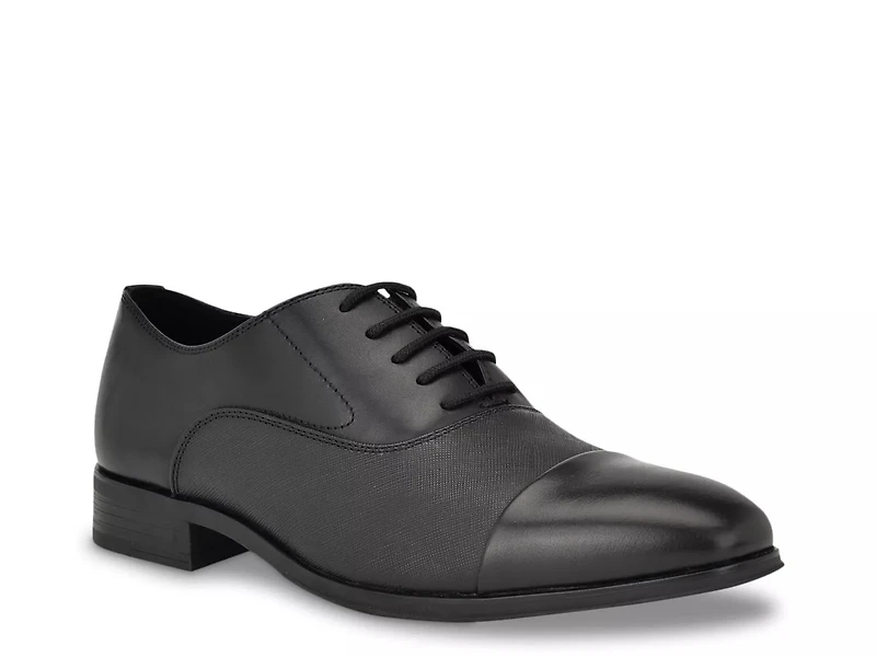 The Calvin Klein Drew oxford might become a favorite staple in your wardrobe. The leather lace-up fashioned with a round cap toe, gets a subtle elevation with a low, block heel.