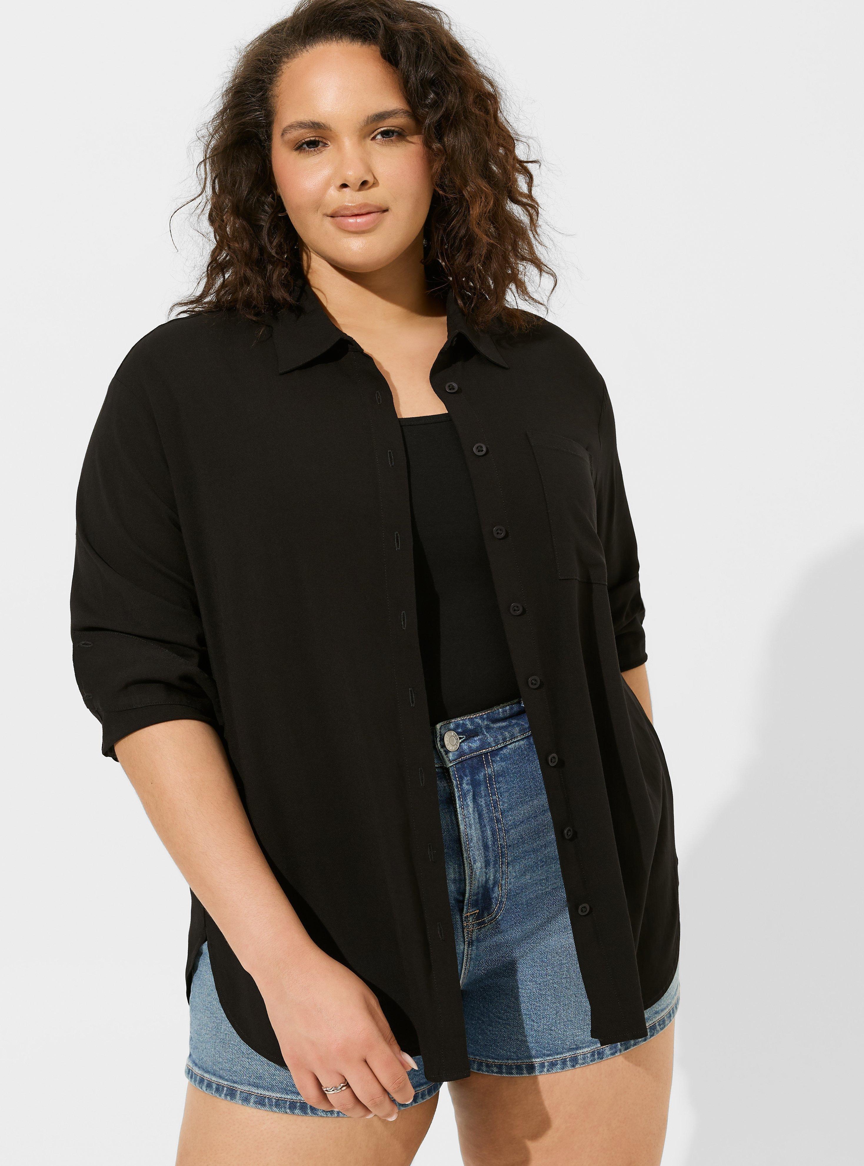 FIT Measures 31"" from shoulder (size 2). MATERIALS + CARE Rayon Slub woven fabric: A soft, linen-like feel that drapes perfectly on the body with a touch of stretch. Perfect for when you want to be polished but comfy at the same time. Stretch level: Medium. 99% rayon, 1% spandex. Machine wash cold. Line dry. Imported. DETAILS Collared neckline. Button front. Breast pocket.