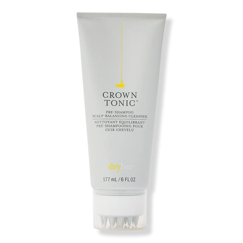 CRWN TNC PRSHMP SCLP BLNCNG CLNS 6FLOZ. Key Ingredients: Probiotic Complex, derived from Lactic and Amino Acids, targets flakes caused by dryness, soothes discomfort and helps to lock in hydration for up to 24 hours.. AHA/BHA Complex, with Glycolic Acid and Salicylic Acid, helps to gently exfoliate and remove build-up.. Mango Leaf Extract, a natural oil-controlling active, helps balance excess sebum.. Scalp massaging applicator helps support circulation and remove impurities.. Cooling sensation offers an instant feeling of relief.. Noir Scent with notes of ginger, mint, and sandalwood.. Formulated Without: Paraben. Sulfate. Phthalate. Keratin. Gluten. Nut & Nut Oil. Honey. Silicone. Petroleum. Research Results: When used as a Pre-Shampoo before our Drybar Shampoo and Conditioner, Crown Tonic extended the need to wash hair again up to 4 days** **Based on a third-party clinical study. 100% of users felt that their scalp condition was improved overall after one use*. 100% of users claimed that the exfoliating applicator increased circulation on the scalp after one use*. 100% of users felt that their scalp was soothed after one use*. 100% of users saw that scalp flakes were less visible**. 100% of users felt that their scalp was less dry**. 100% of users claimed that their scalp was less itchy **. *Based on a third-party clinical study after one use. **Based on a third-party clincal study after two uses.