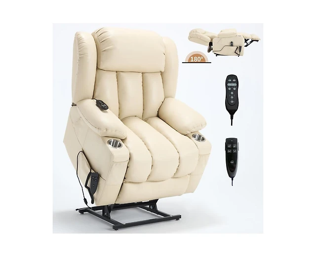 Dual Motor Infinite Position Up to 350 Lbs Leatheraire Power Lift Recliner Chair, Heavy Duty Motion Mechanism with 8-Point Vibration Massage and Lumba