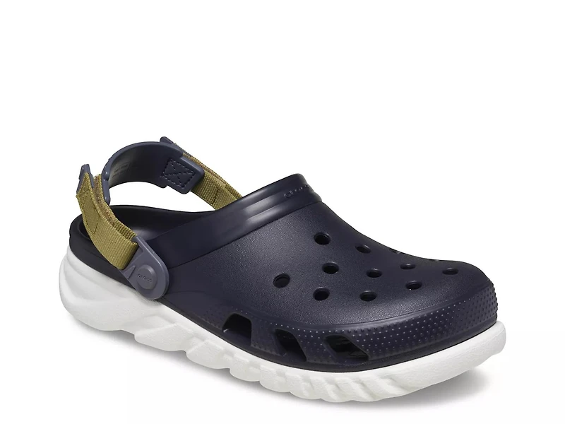 Toughen up your casual looks with the edgy Duet Max II clog from Crocs. The slingback strap and treaded sole lend rugged appeal to this pair.