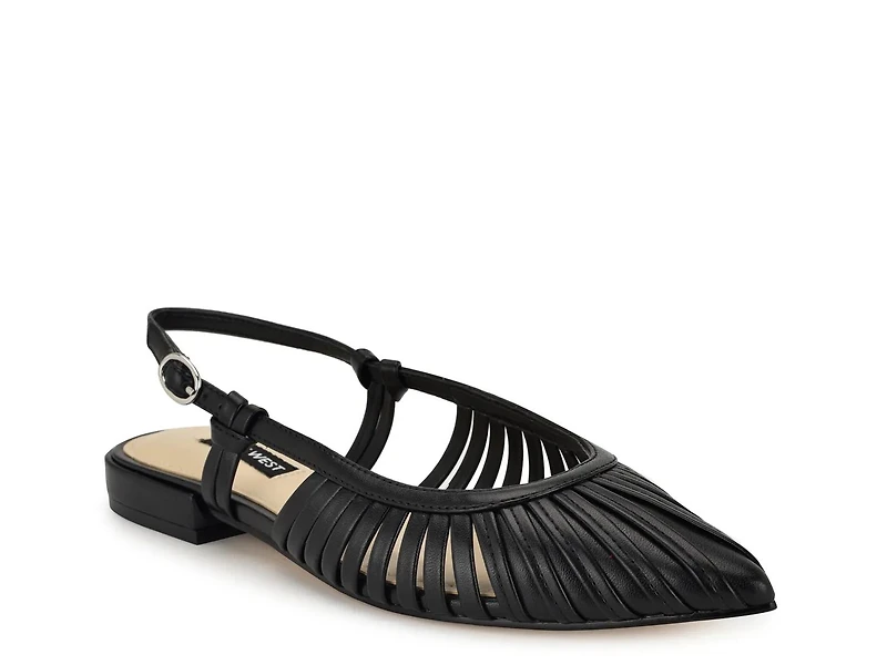 With strappy accents, a slingback design, and a sleek pointed toe, the Duria flats from Nine West are an upgraded version of a simple style. This polished pair adds a fashionable flair that complements any look with ease.
