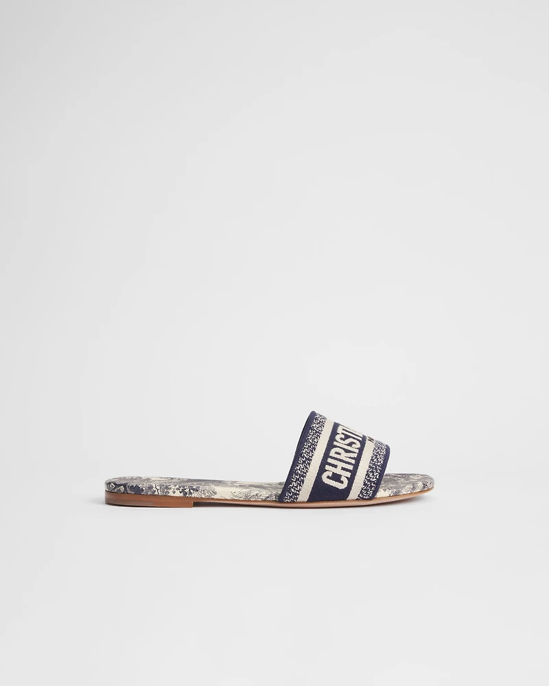 The Dway slide is a hallmark and timeless style honoring the House's Toile de Jouy motif. The gray upper has an embroidered Christian Dior Paris signature for an instantly recognizable touch. Its streamlined silhouette makes it easy to slip on to complete a relaxed look. The shoe will pair well with other Toile de Jouy creations from the collection.