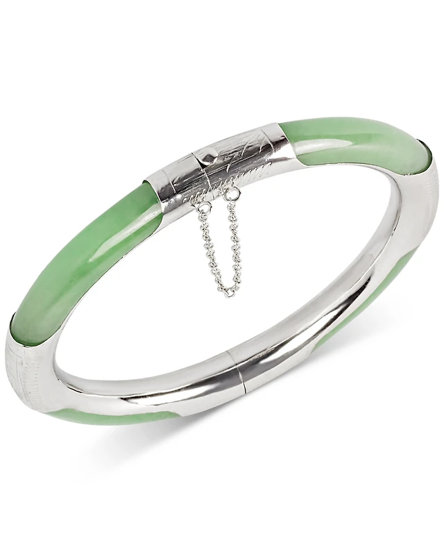 Dyed Green Jade (7mm) Bangle Bracelet in Sterling Silver (Also available in Red, Black and Green and Red Dyed Jade)