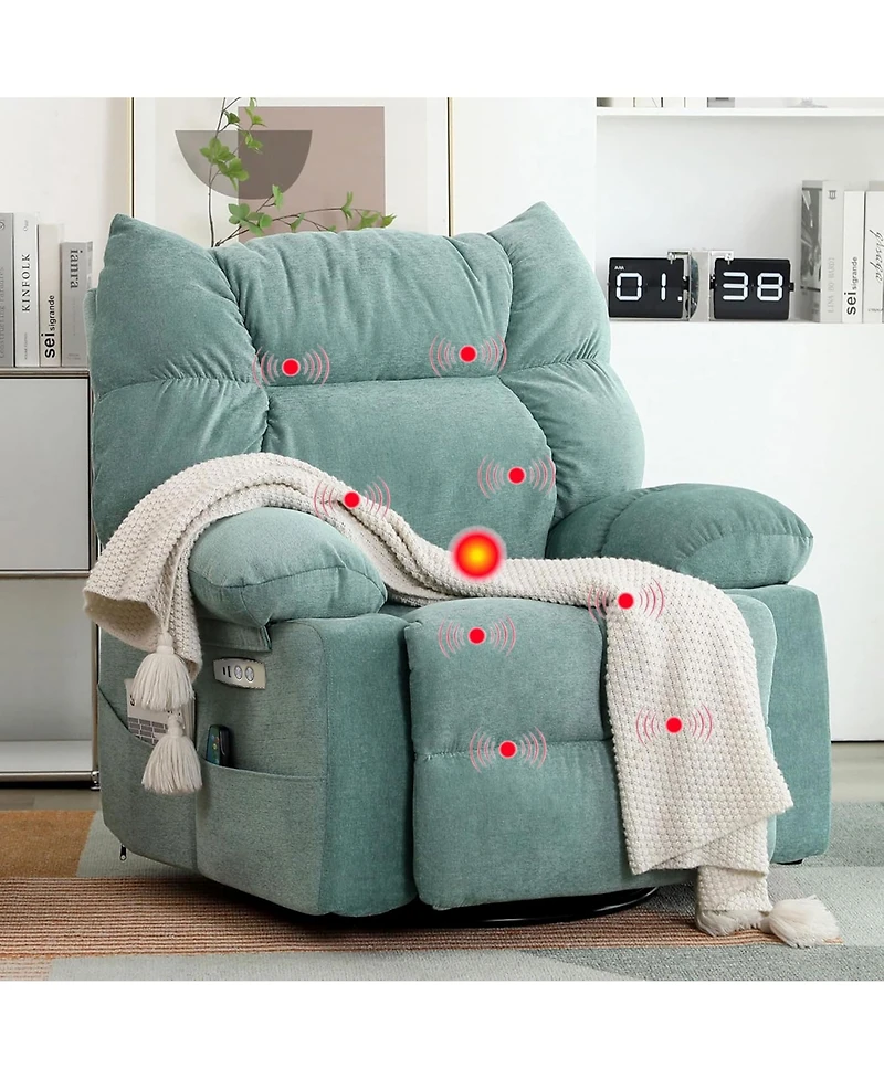 Experience the ultimate in comfort and convenience with the Power Massage Recliner. Featuring a heated swivel function (8 comfortable massage points and lumbar heating) as well as Usb and Usb-c ports, this upgraded power recliner can be switched on or off at the touch of a button, and can be used for everything you need to unwind after a busy day. You can adjust the angle of the backrest (90°-160°) and the height of the footrest (0-90°) at will. Meanwhile, the 270-degree swivel and 30-degree forward/backward horizontal rocking functions bring you the ultimate home theatre experience. Arrives in one box and assembles quickly with simple instructions, so you can enjoy your new chair without stress.