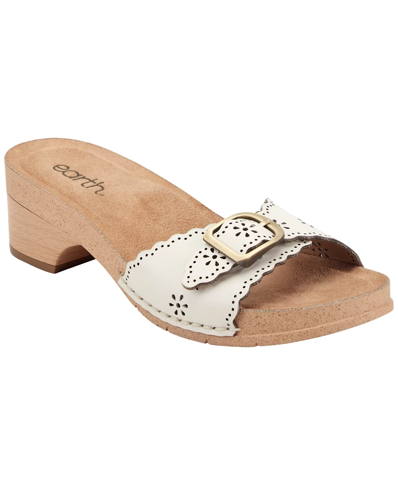Earth Women's Haisly Leather Buckle Band Block Heel Sandals
