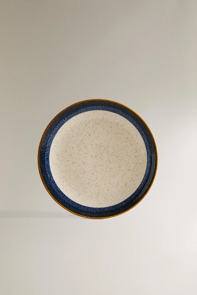 EARTHENWARE DESSERT PLATE WITH CONTRASTING RIM