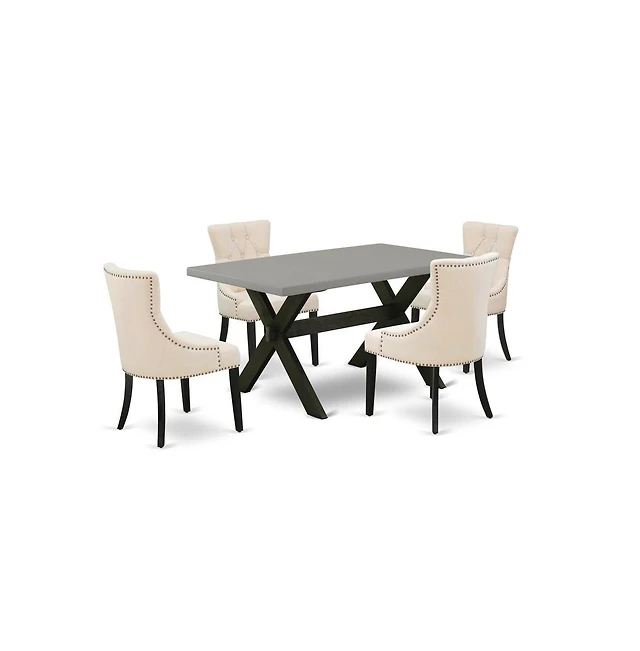 East West Furniture 5-Pc Dinette Set - 4 Parson Dining Chairs and 1 Modern Rectangular Cement Breakfast Table Top with Button Tufted Chair Back