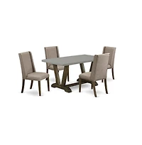 East West Furniture 5-Pc Dinette Set Included 4 Dining room chairs Upholstered Seat and Stylish Chair Back and Rectangular Dining Table with Cement Color Dining Table Top - Distressed Jacobean Finish. [Product Included] 5-piece dining table set provide an amazing look. Includes 4 beautiful modern dining chairs and a great dining table to enhance the grandeur of your dining room.
