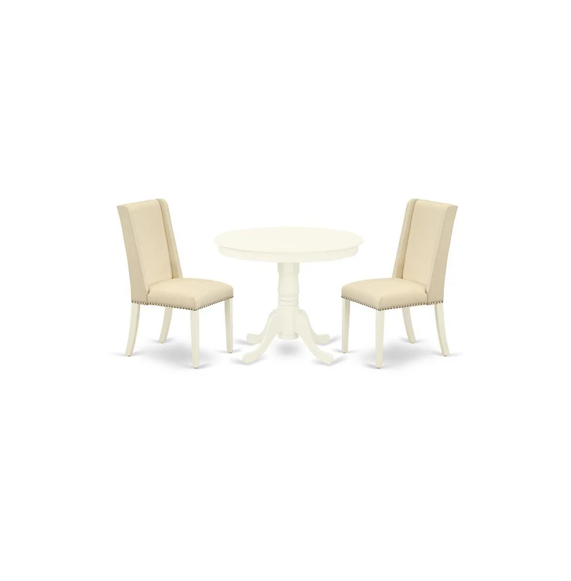 Dining Room Set Linen White, ANFL3-lwh-01. [Wood Dining Table Set]: This set includes a dinette table and 2 parsons dining chairs. Gather everyone around this dinette set-it seats 2 perfectly for attractive and relaxed dinner time. It is a perfect addition to your dining space.