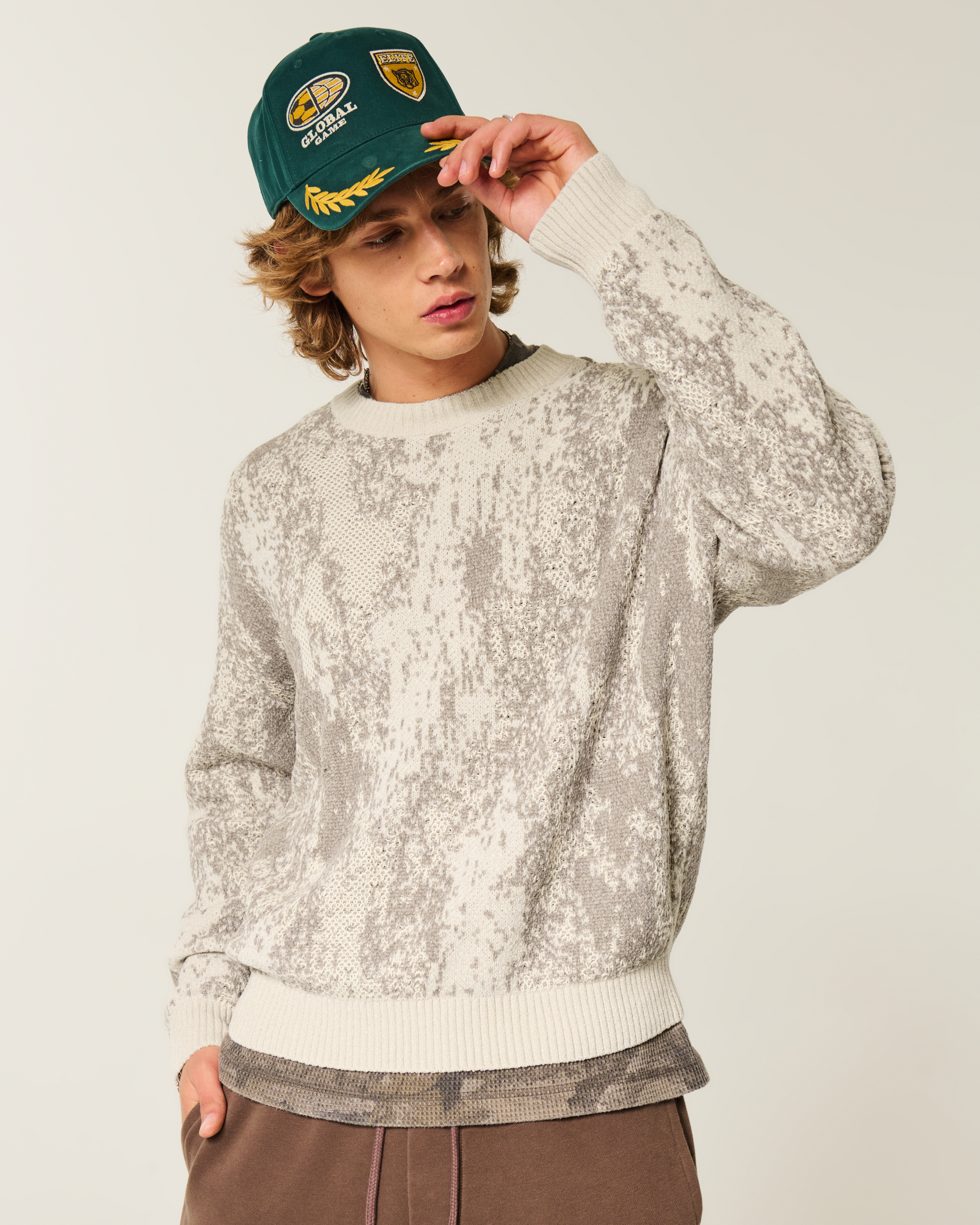 Boxy Pattern Crew Sweater
