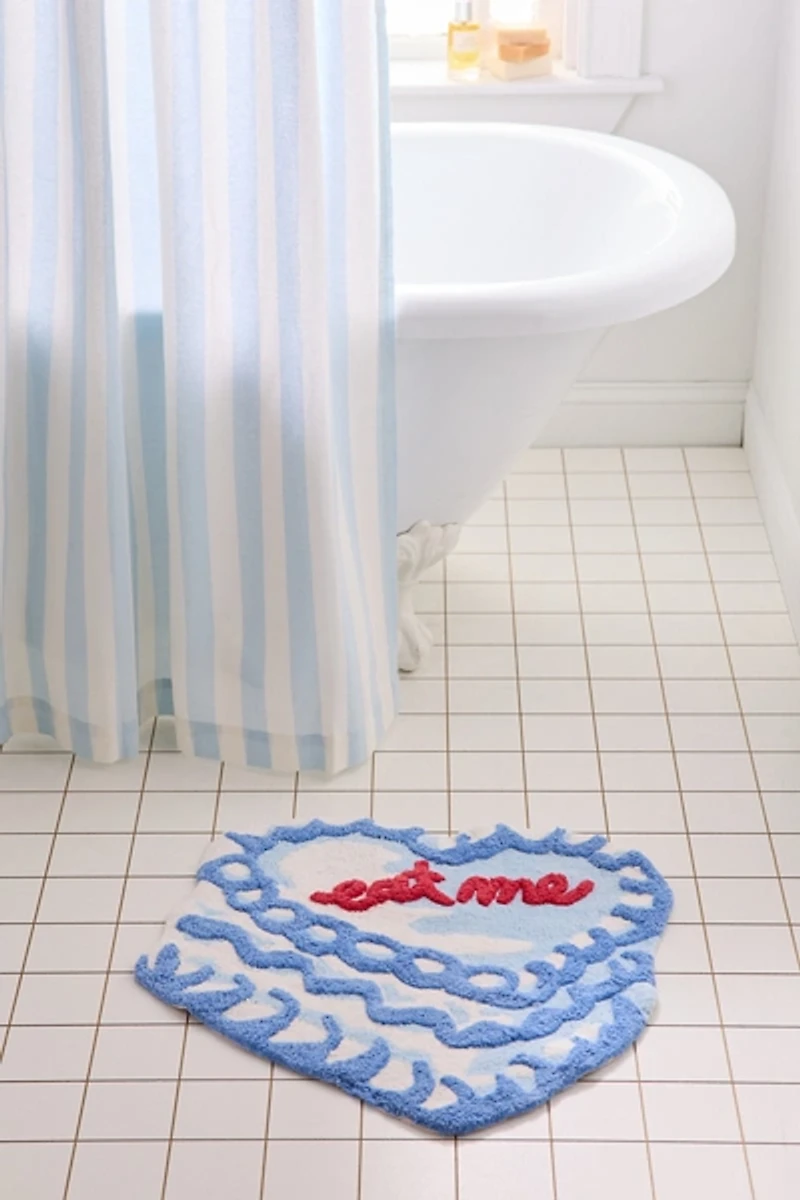 Enjoy a freshly tufted treat with this plush bath rug featuring a heart-shaped cake topped with Eat Me text. Made from plush cotton that’s so cozy underfoot. Available exclusively at Urban Outfitters.