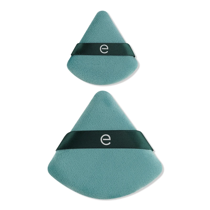 POWDER PUFF DUO. Benefits: Full-size powder puff is designed for all-over setting in places such as your t-zone & cheeks. Mini makeup puff was created for extra precision application such as under the eyes. Both powder puffs are best used with loose or pressed powder. Features: 2 makeup puffs for precise baking & all-over setting. Finger band for controlled application. Triangle puff made from 100% polyester. Eco-friendly, FSC-certified compostable paper packaging. Never tested on animals. :