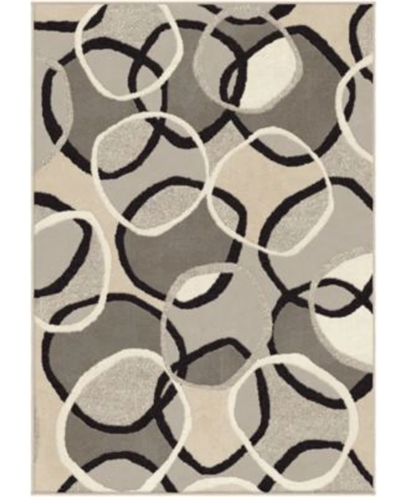 Happenstance rings of black and cream highlight sections of tan and taupe atop the Halo area rug in multi. Youthful and spirited, this freeform rug adds whimsy to any room. It's stain-resistant, non-fading and easy to clean for years of worry-free ownership at a very approachable price point.