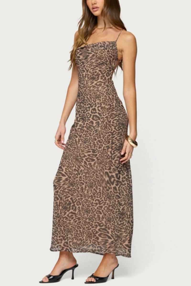 Edikted Ayanah Leopard Printed Backless Maxi Dress