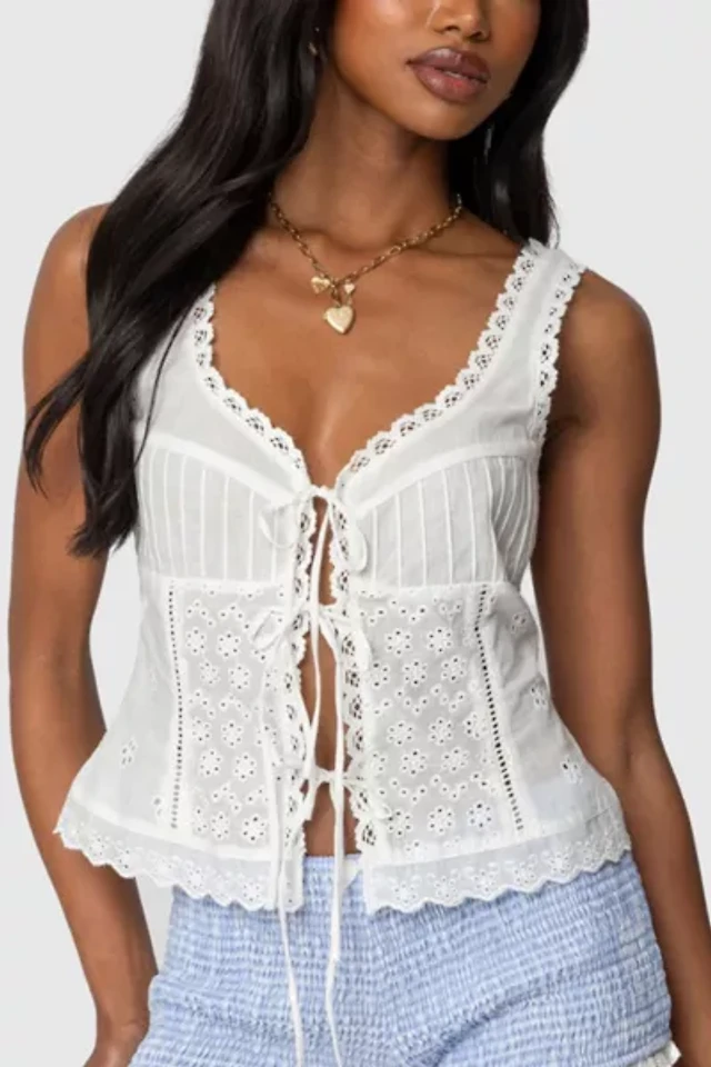 Edikted Fiore Eyelet Tie Front Top