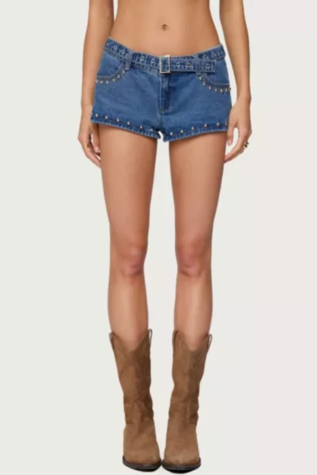 Edikted Women's Studded Low Rise Denim Micro Shorts