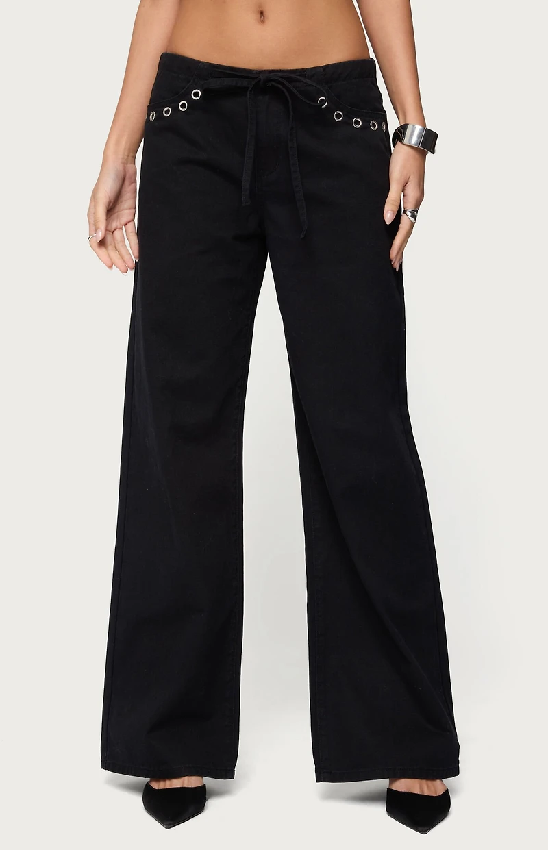 Edikted Grommet Tie Waist Low Rise Jeans
