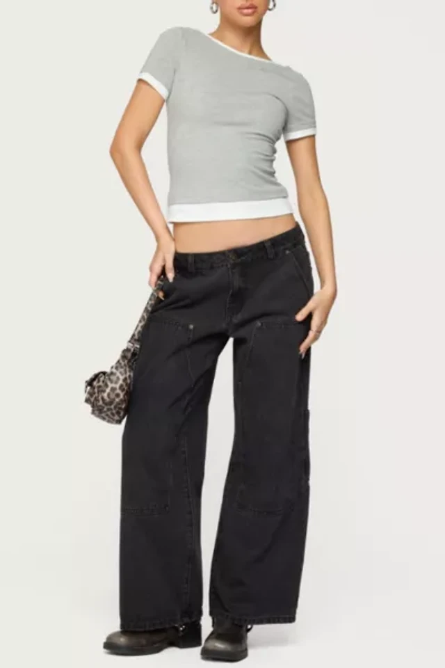 Edikted Saige Contrast Layered Ribbed T-Shirt