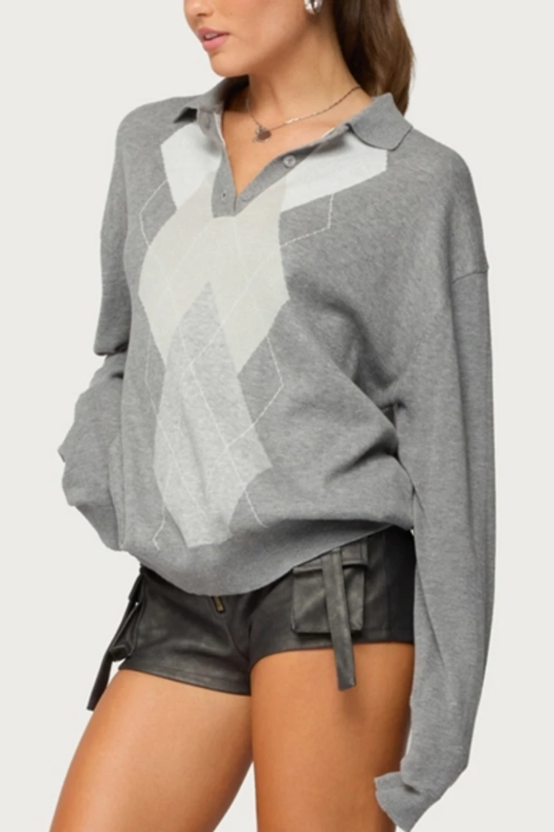 Edikted Kati Argyle Oversized Polo Sweater in Bloomington, MN