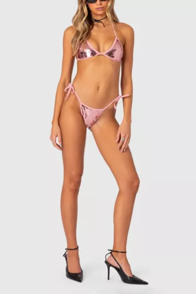 Edikted Women's Grace Sequin String Bikini Bottom