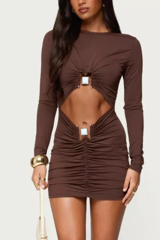 Edikted Coastal Plunge Neck Cutout Mini Dress